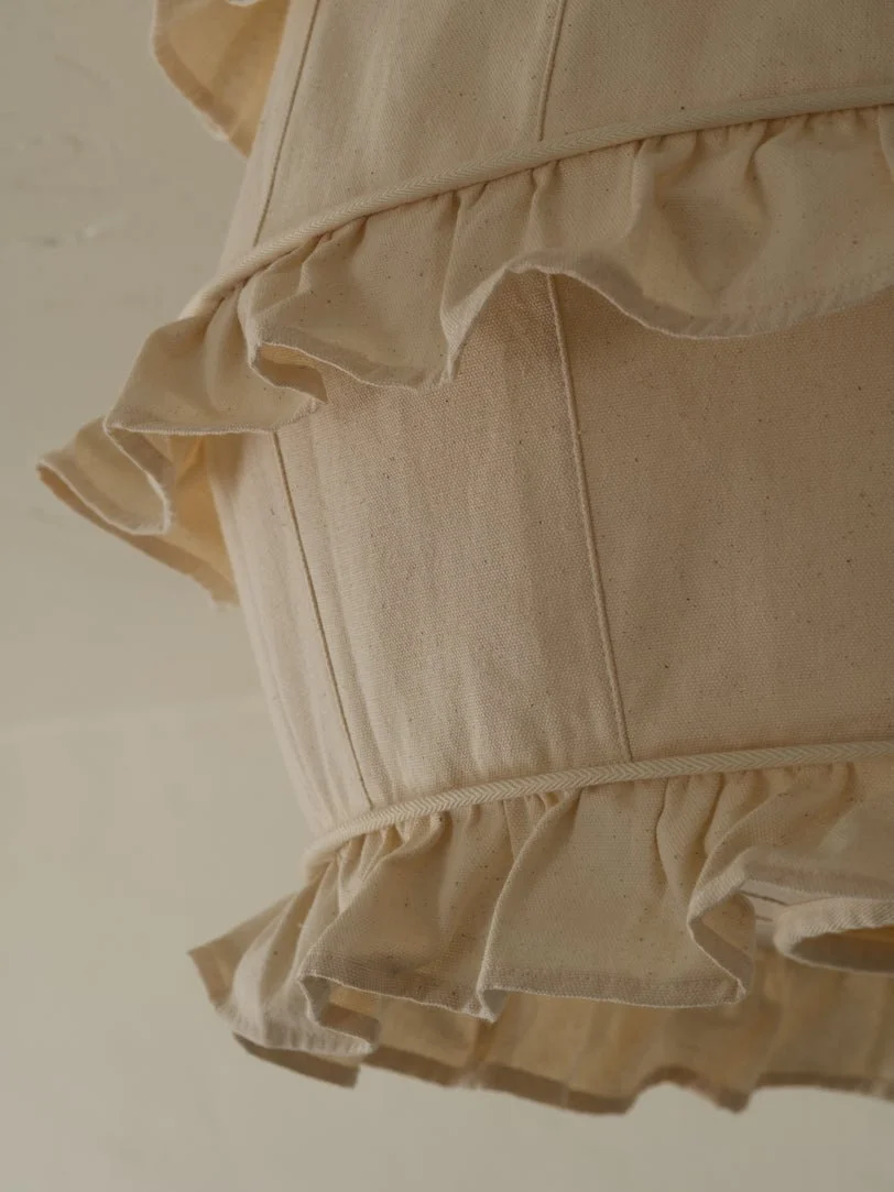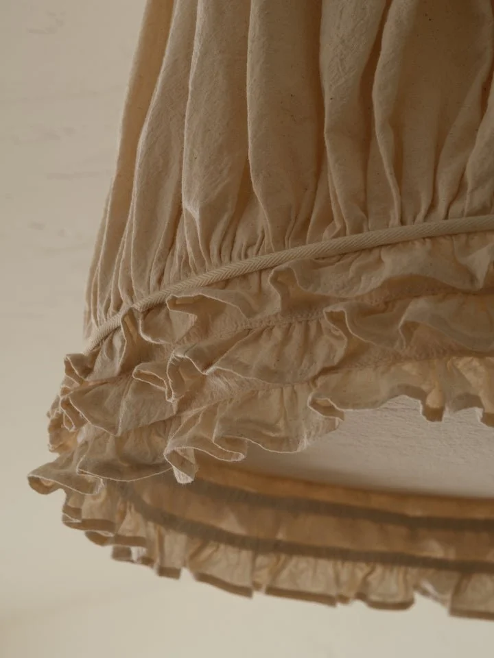 Gem Ruffles. This Shade reinterprets ornament as structure. Layered ruffles wrap the Gem’s classic silhouette, introducing texture, depth, and gentle movement inspired by the ruffling found on camisole tops.