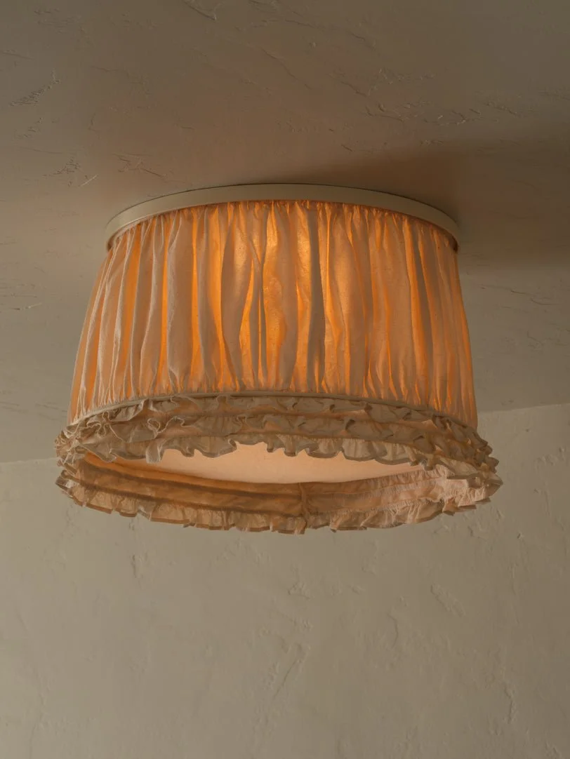 Lamp Gathered. Playful yet refined, this shade was designed with texture and the soft diffusion of light in mind. Intentionally bunched and stretched to achieve the gathered construction of the classic bloomer garment.